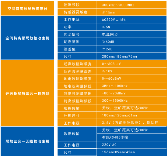 產(chǎn)品由空間特高頻局放傳感器、空間特高頻局放接收主機(jī)、開(kāi)關(guān)柜局放三合一傳感器、局放三合一無(wú)線接收主機(jī)四部分構(gòu)成。
